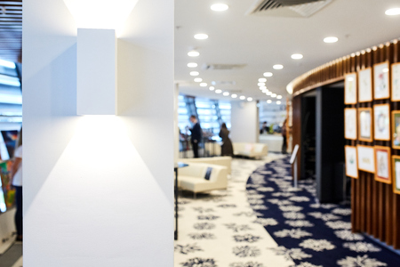 Abstract blurred interior hotel, hospital or office lobby for background. Retro filtered effect image