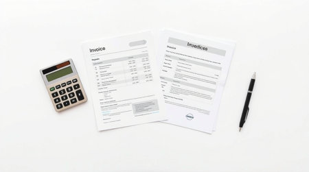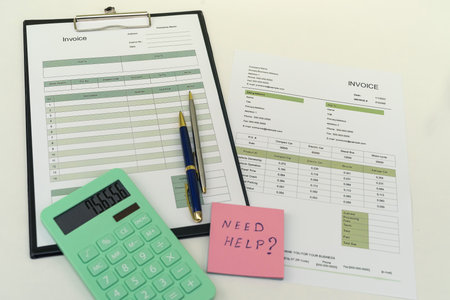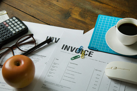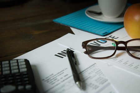 Close-up on invoice letters and pen