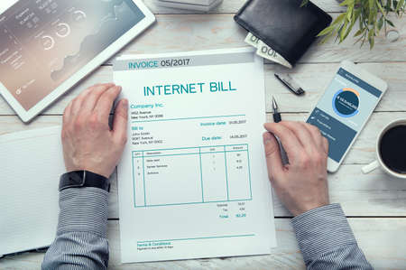 Internet bill invoice on the white table.
