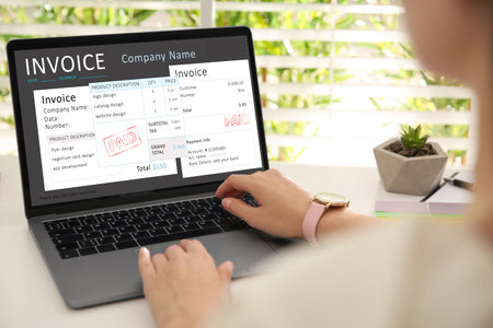 Invoice on computer screen from accounting application. Computer program for financial and budget of corporate business.