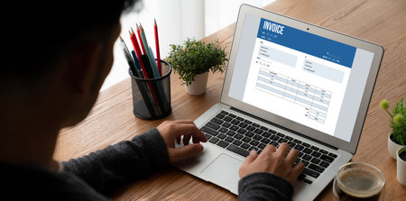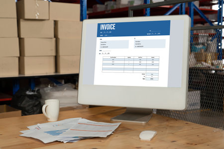 Invoice on computer screen from accounting application. Computer program for financial and budget of corporate business. Snugly.
