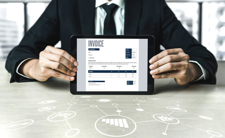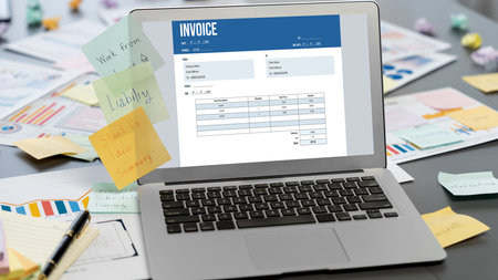 Invoice on computer screen from accounting application. Computer program for financial and budget of corporate business. brisk.