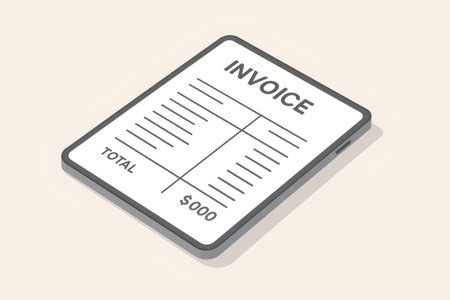 Electronic invoice displayed on a tablet screen, showing total costs and expenses in an isometric perspective