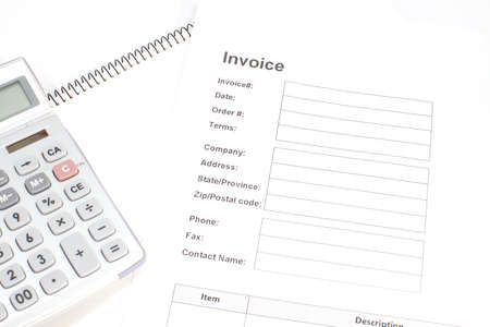 calculator and receipt with the word invoice. concept of payment receipt or proof of payment