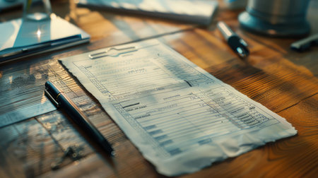 Business customer receipt with pen on a weathered desk