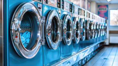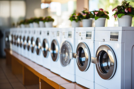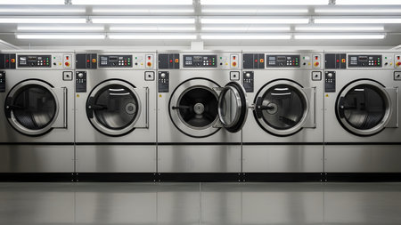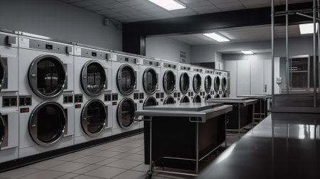 laundry, washing machines in a row. AGenerative AI