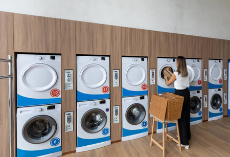 Modern laundromat efficient laundry washing machines for convenient household cleaning services