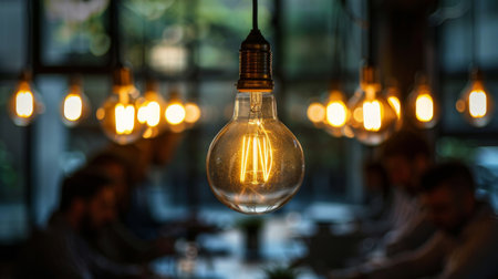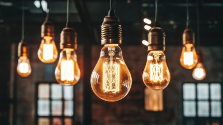 Charming collection of elegant hanging light bulbs illuminating a modern interior space. Perfect for enhancing atmosphere and aesthetic appeal in design.