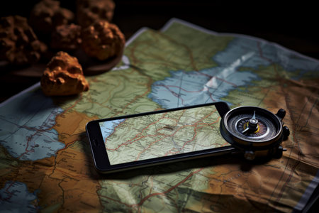gps map navigation position point direction travel mobile location phone. Generative AI.