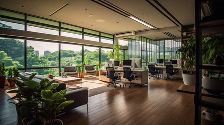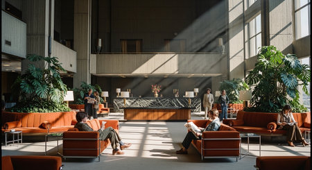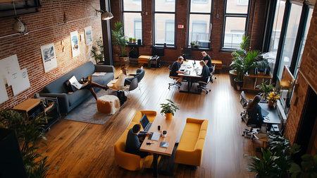 A bustling workspace where teams collaborate creatively showcasing modern office design and teamwork.