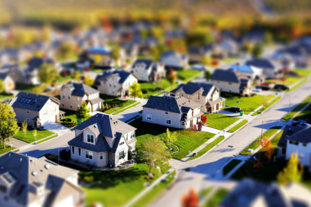 quiet residential street, with houses lined up in perfect symmetry, created with generative ai