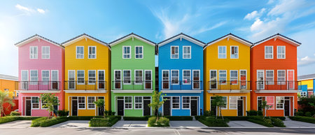 Vibrant Modern Urban Townhouses in a Newly Constructed Real Estate Development. Concept Real Estate, Townhouses, Modern, Urban, New Development