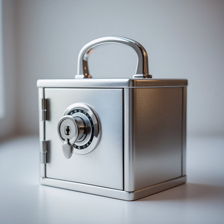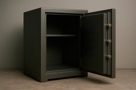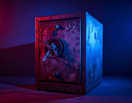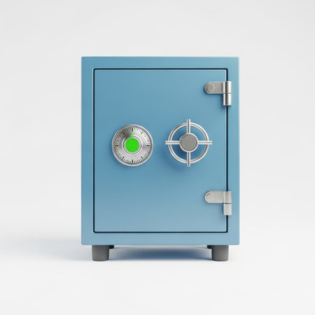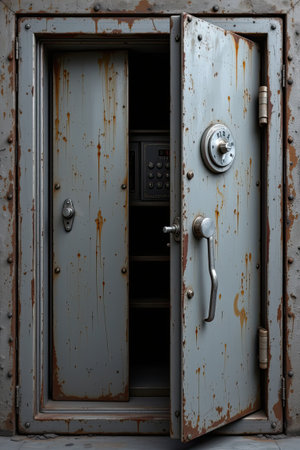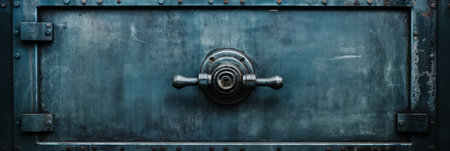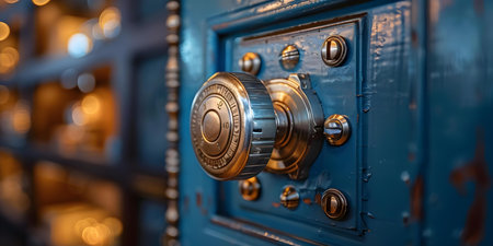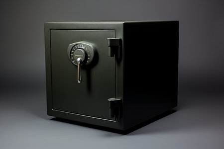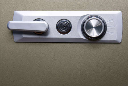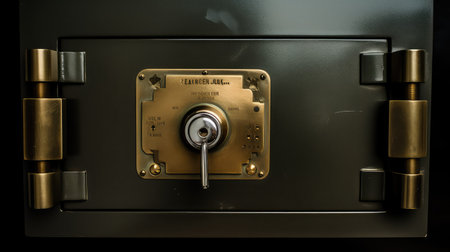 Close up image of a safe with a locking mechanism, representing security, protection, and safekeeping.