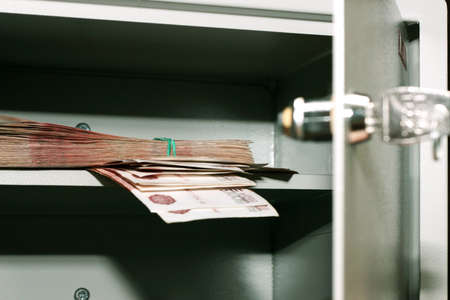 Cash Money Safe Deposit. Symbol of money safety. The man steals dollars from small Residential Vault. Toned soft focus picture.