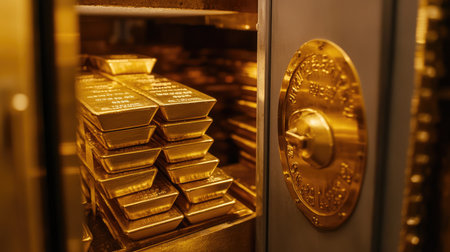 Stacks of gold bars reflected in a vault door, symbolizing safety and security of assets.