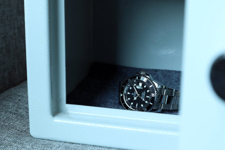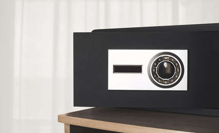Secure bank safe with combination lock for valuables storage fireproof and electronic. Concept Electronic Safe, Fireproof, Valuables Storage, Combination Lock, Bank Security