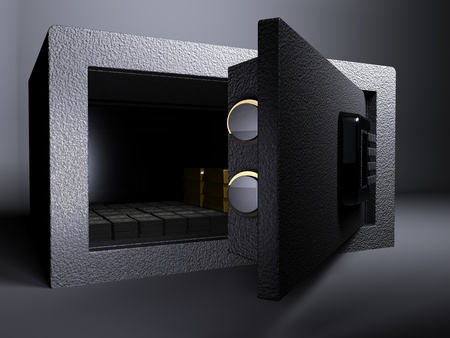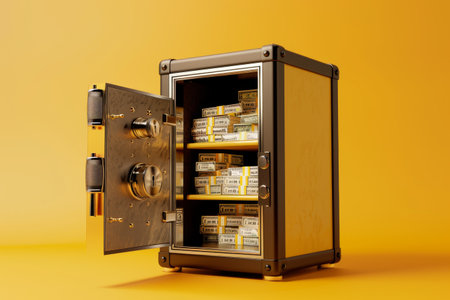 Secure vault protecting valuables with coins inside for privacy and safety. Generative AI