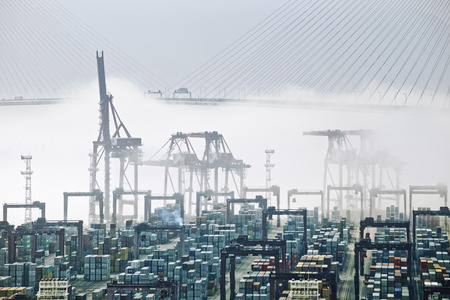 Huge modern port operating machines and containers in one of the busiest port in Asia.
