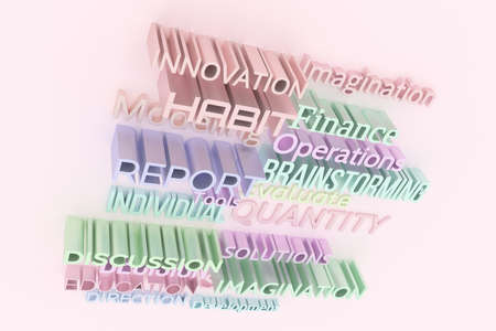 Colorful 3D rendering. Business related keywords, illustrations of CGI typography, for graphic design, wallpapers, booklets.