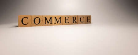 The name Commerce policy was created from wooden letter cubes. finance and economy. close up.
