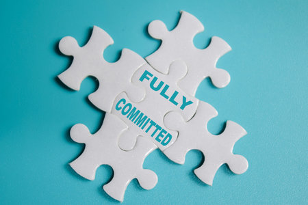 piece of jigsaw puzzle with word Fully committed. Business and finance concept