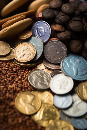 macro image of different currency banknotes and coins, created with generative ai
