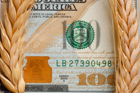 Wheat spikelet on one hundred dollars