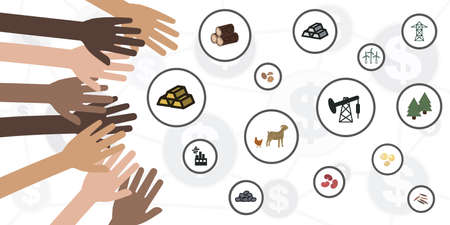 vector illustration of natural resources and hands for demand of people for natural goods