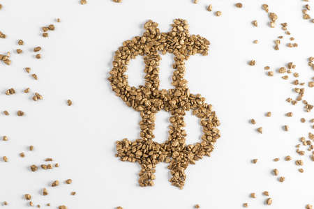 Top view on dollar sign made from golden pieces