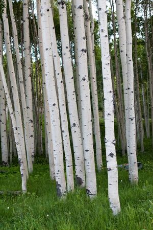 Group of quaking aspen trees growing close together in the high mountains