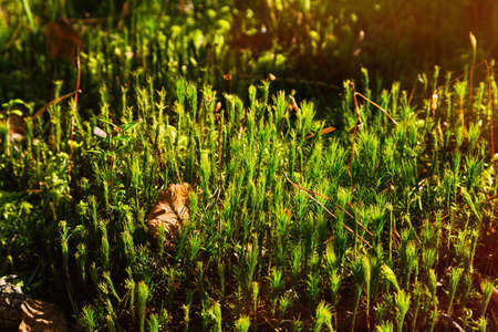 young fresh sprouts of moss in a blurred light