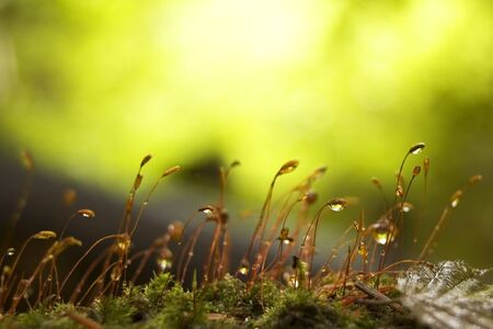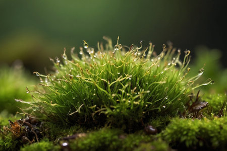 haircap moss with water drops closeup selective focus