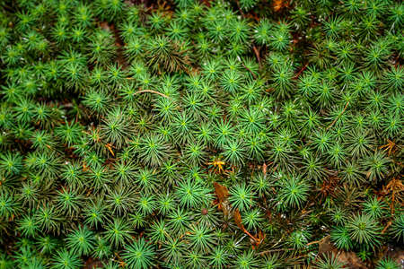 Sedum moss growing in forest close-up, Moss Polytrichum
