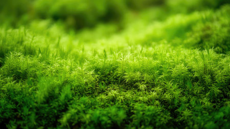 A serene scene of vibrant green moss, providing a calming and organic backdrop with plenty of copy space for botanical or nature-inspired content.