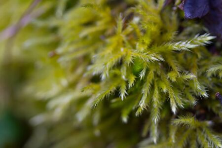 Macro of moss in the forest. Nature background. Shallow depth of field