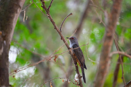 Beautiful bird, female of Plaintive Cuckoo (Cacomantis merulinus) perching on a branch, Bird from Thailand