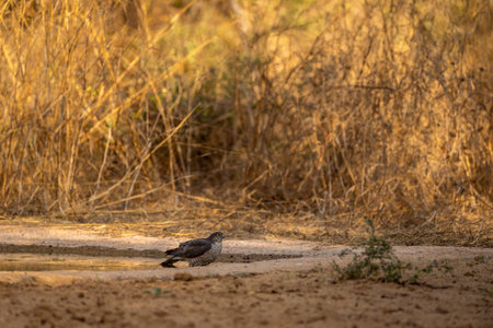 eurasian or northern sparrowhawk in waterhole for quenching thirst during safari forest of central india - accipiter nisus