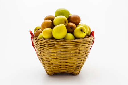 Jujube green and red in basket on a white background.