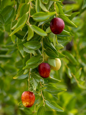 tasty and healthy ripe jujube on tree in firm for harvest
