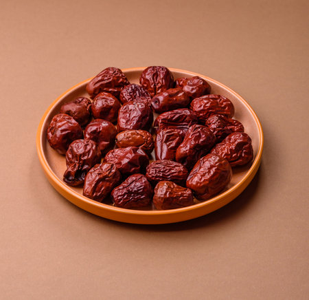 Jujube, Chinese dried red date fruit on a plate