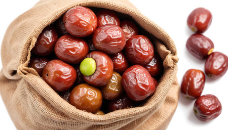 Chinese jujube in sack isolated on white background