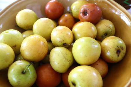 Fresh green plum and preserved green plum