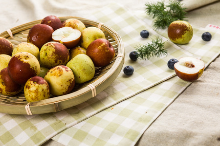 Monkey Apple, Ripe jujubes on wood background