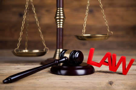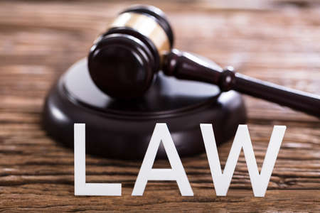 A closeup shot of the word Law from wooden letters
