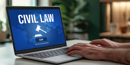 Civil law brisk information showing on computer screen for Common Justice Legal Regulation Rights Concept