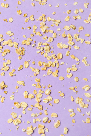 Dry oatmeal scattered in the form of a circle on a white background. Copy, empty space for text.