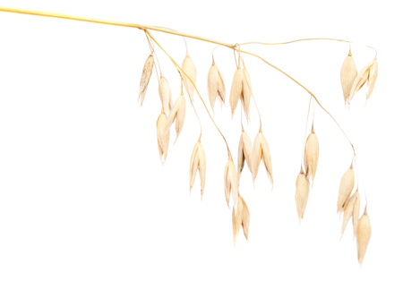Dietary cereal pads on a white background. Dry oat branch isolated on white background