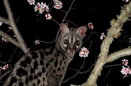Large-spotted genet, Genetta tigrina, stalking its prey