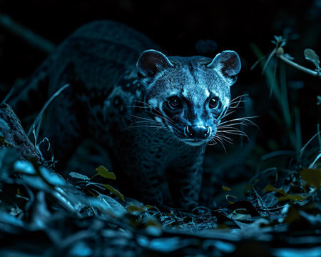 Nocturnal animals Large indian civet (Viverra zibetha) finding food in nature in the night at Kaengkracharn national park,Thailand