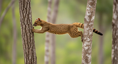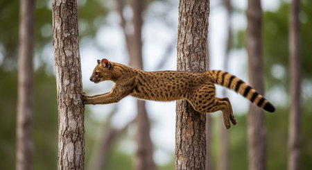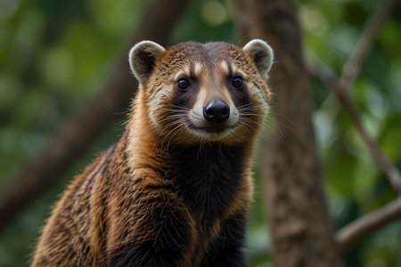 An AI generated illustration of a coati, also known as a coatimundi, is seen in its natural habitat, exploring the lush vegetation